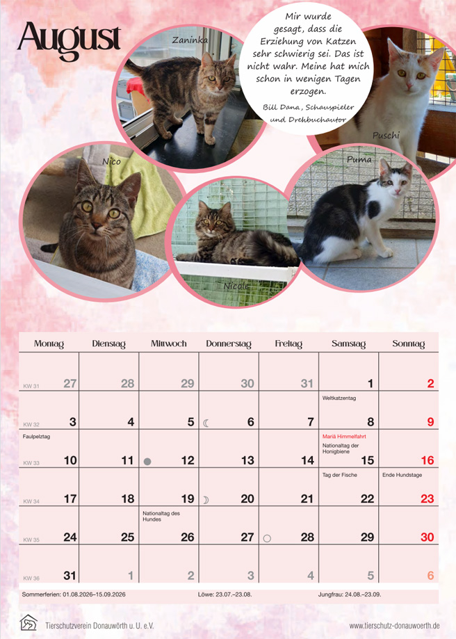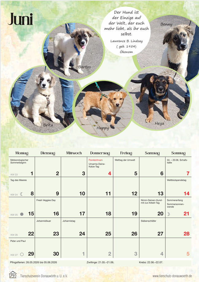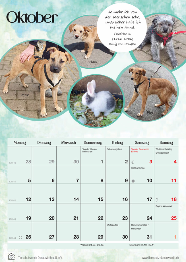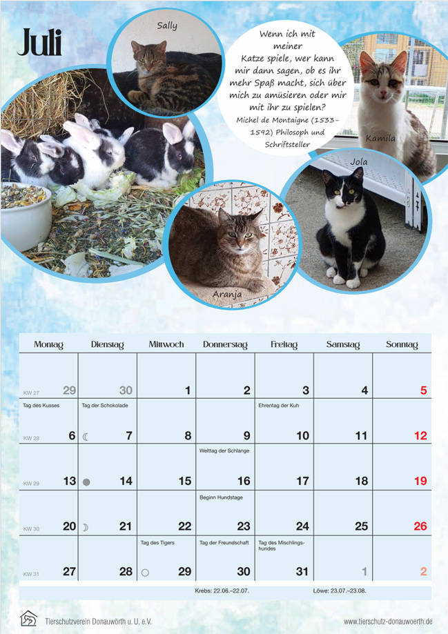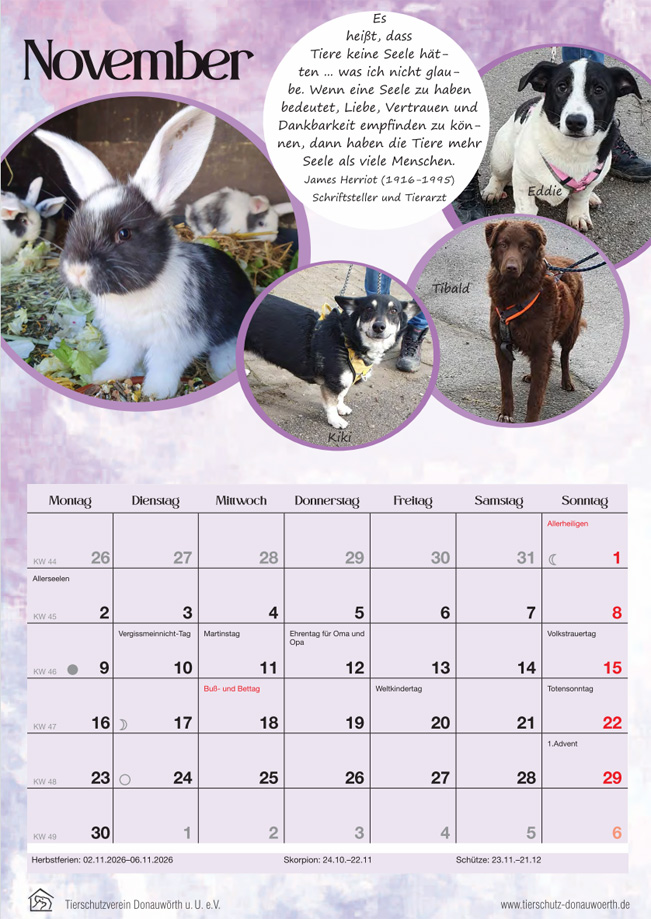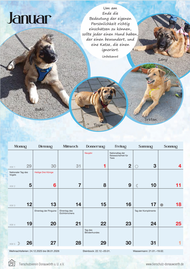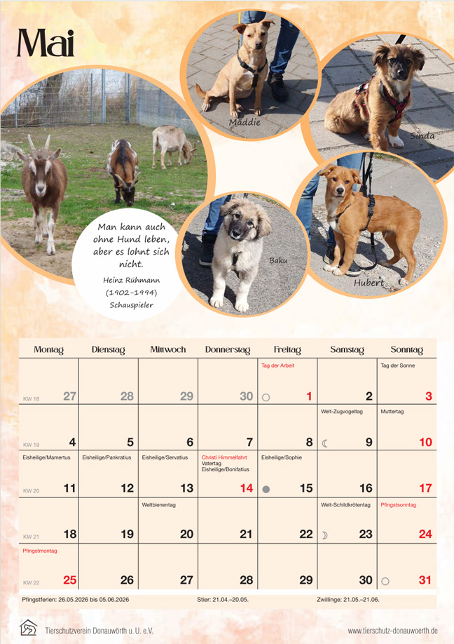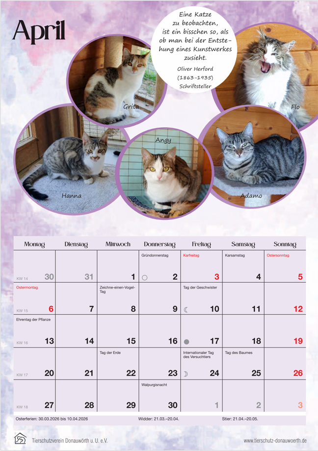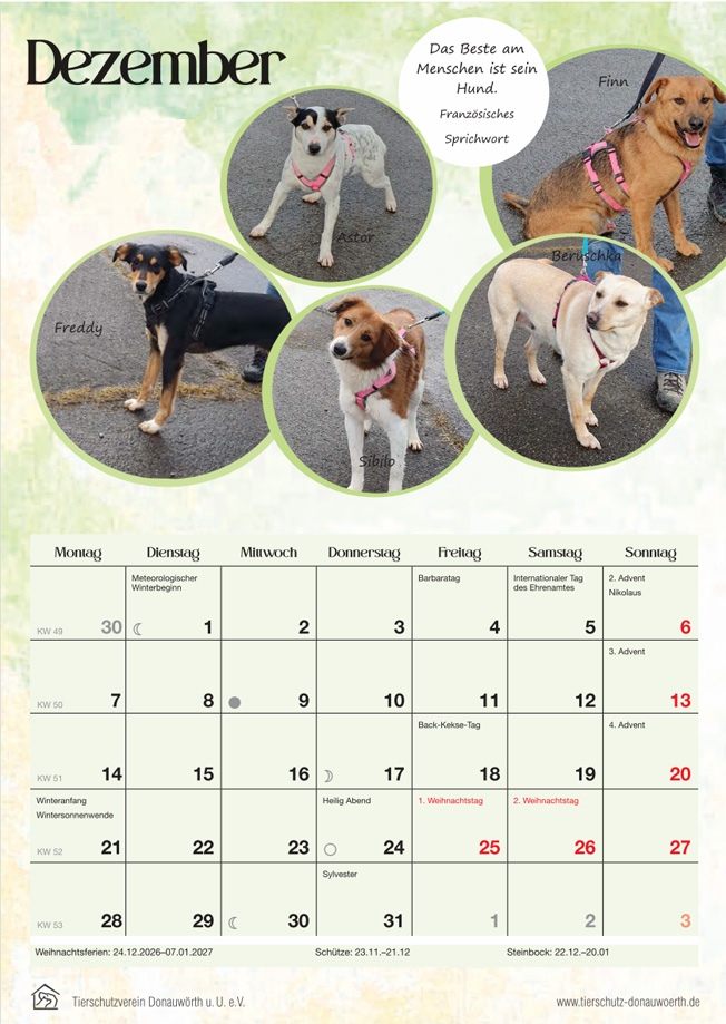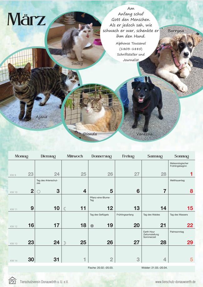Ich möchte den Kalender des Tierschutzverein Donauwörth u. U. e. V. kostenpflichtig bestellen.