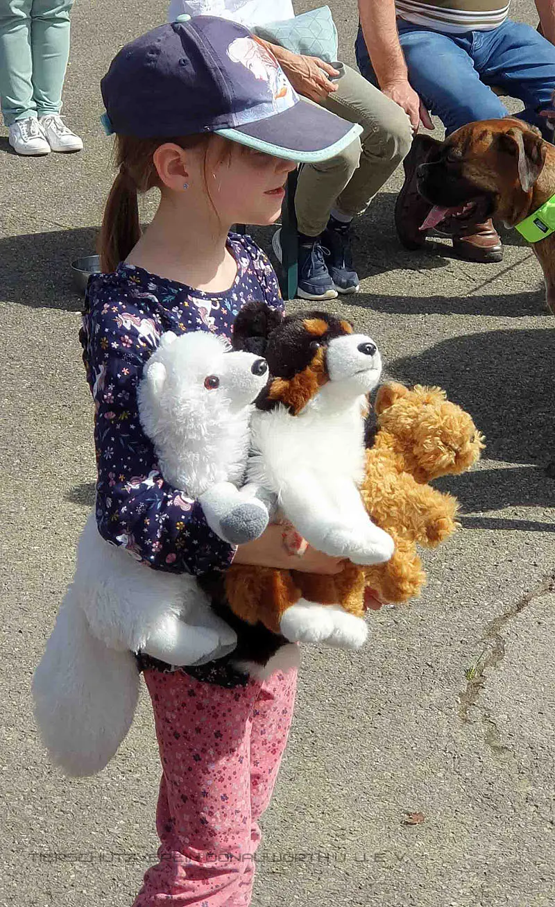 hatten 40 Kinder im Tierheim Hamlar im Rahmen des Donauwörther Ferienprogramms. Einmal mit Welpen spielen, in Tandem mit Erwachsenen große Hunde Gassi führen und Ziegen mit Zweigen füttern! Die Neuzugänge Zwergziegen, Katzen und Hasen behutsam streicheln! Das genossen die Gäste ebenso wie das Unterhaltungsprogramm. Elfriede Weiß lud zum Tierbasteln ein, Alessandra Modlmeier bot cooles Kinderschminken, Anne Koch und ihre Hunde Fee und Ayala zeigten Tricks. Gemeinsam mit Christian und Petra Bauer vom team4two vermittelte Lechspitz Aussie Jako, worum es bei Agility geht und worauf achten muss, wer Hunde trainiert. Ein Tierheimquiz rundete das Programm ab.